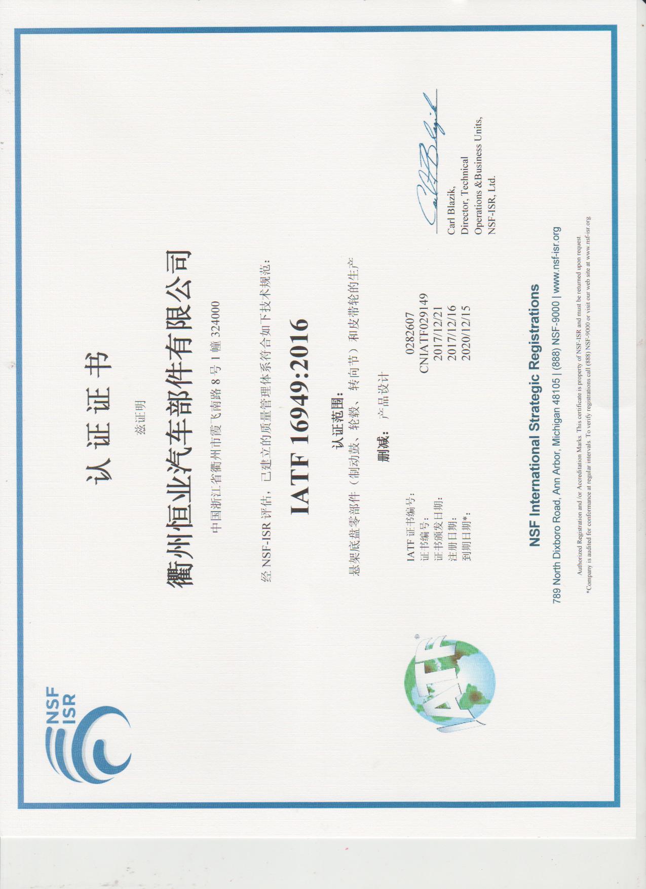 IATF質(zhì)量體系認(rèn)證證書